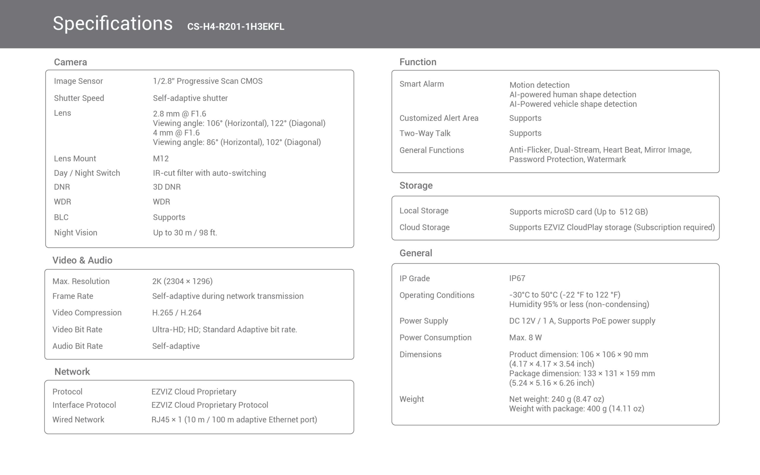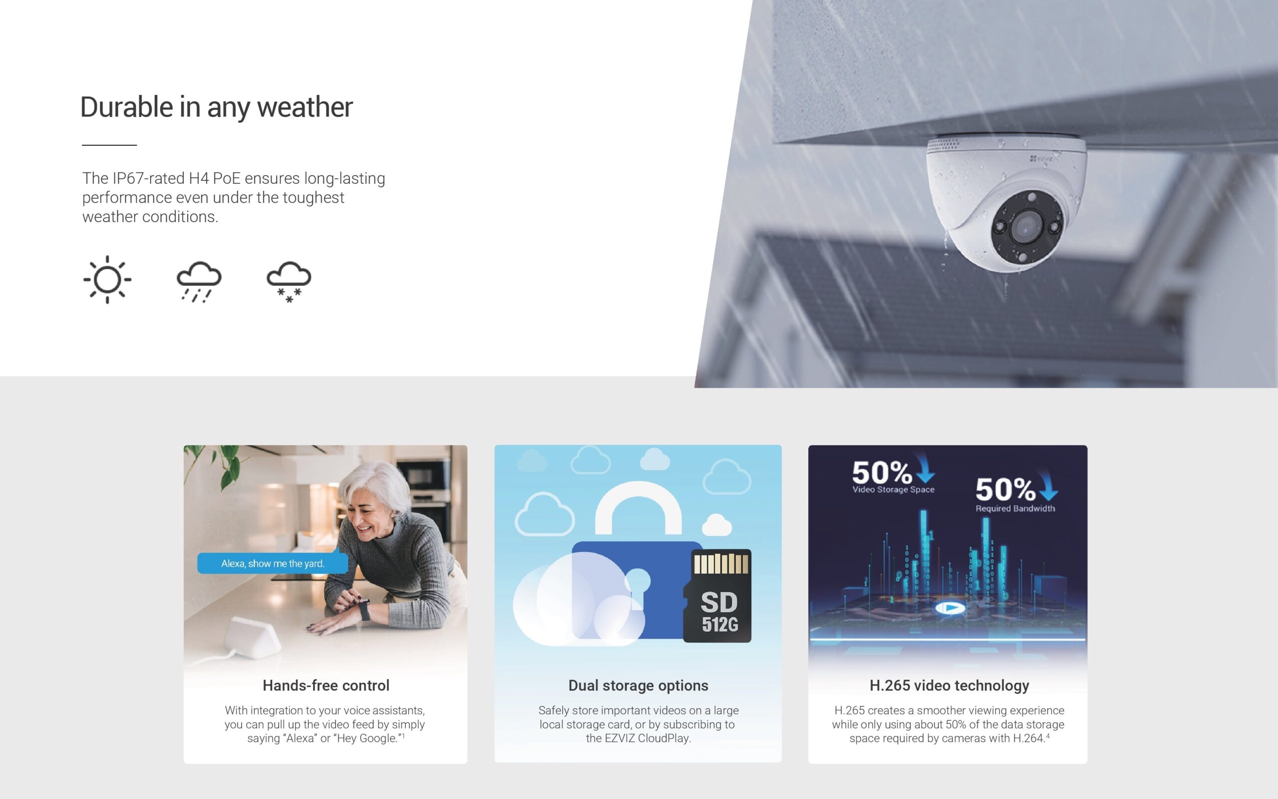 - Supports MicroSD Card (Up to 512 GB) & EZVIZ CloudPlay Storage⁴